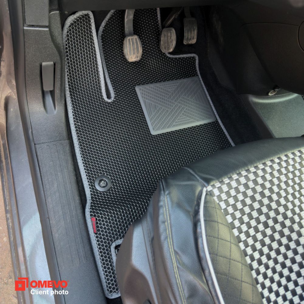 OMEVO EVA Mats® sú vyrobené z ľahkej, vodovzdornej peny E-V-A. Neabsorbujú vlhkosť, sú bez zápachu a ľahko sa čistia. OMEVO EVA Mats® kombinujú to najlepšie z gumových a velurových rohoží, pričom vynechávajú ich typické nevýhody. Sú vodoodolné, estetické, bez zápachu a vyrábajú sa presne podľa modelu auta, čo zabezpečuje pohodlie a čistotu každý deň.