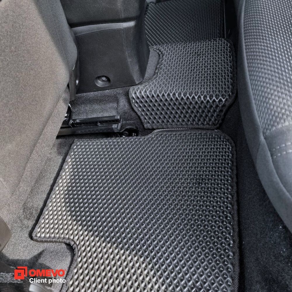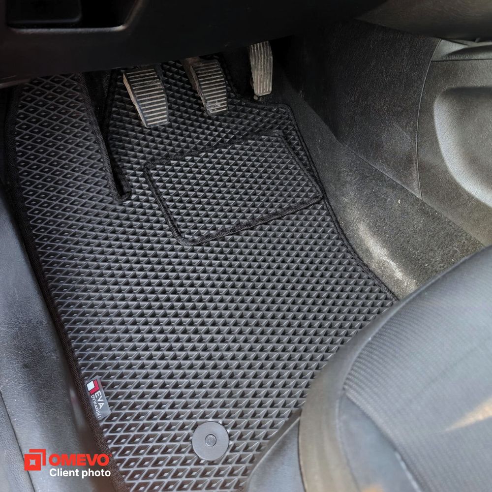 OMEVO EVA Mats® sú vyrobené z ľahkej, vodovzdornej peny E-V-A. Neabsorbujú vlhkosť, sú bez zápachu a ľahko sa čistia. OMEVO EVA Mats® kombinujú to najlepšie z gumových a velurových rohoží, pričom vynechávajú ich typické nevýhody. Sú vodoodolné, estetické, bez zápachu a vyrábajú sa presne podľa modelu auta, čo zabezpečuje pohodlie a čistotu každý deň.