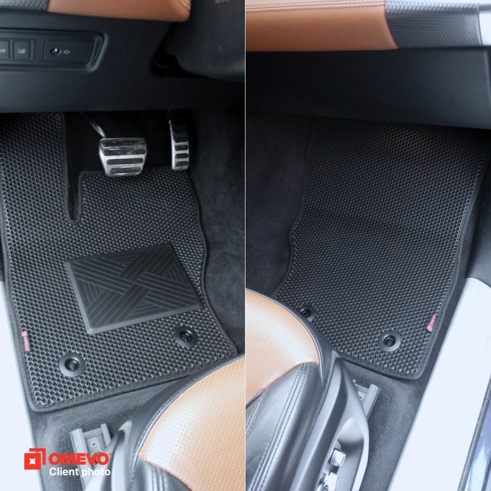 OMEVO EVA Mats® sú vyrobené z ľahkej, vodovzdornej peny E-V-A. Neabsorbujú vlhkosť, sú bez zápachu a ľahko sa čistia. OMEVO EVA Mats® kombinujú to najlepšie z gumových a velurových rohoží, pričom vynechávajú ich typické nevýhody. Sú vodoodolné, estetické, bez zápachu a vyrábajú sa presne podľa modelu auta, čo zabezpečuje pohodlie a čistotu každý deň.