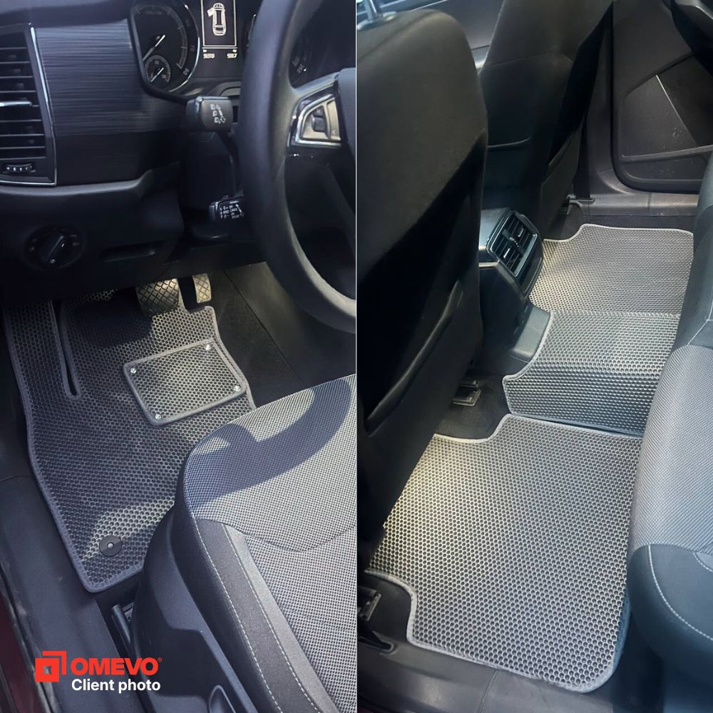 OMEVO EVA Mats® sú vyrobené z ľahkej, vodovzdornej peny E-V-A. Neabsorbujú vlhkosť, sú bez zápachu a ľahko sa čistia. OMEVO EVA Mats® kombinujú to najlepšie z gumových a velurových rohoží, pričom vynechávajú ich typické nevýhody. Sú vodoodolné, estetické, bez zápachu a vyrábajú sa presne podľa modelu auta, čo zabezpečuje pohodlie a čistotu každý deň.