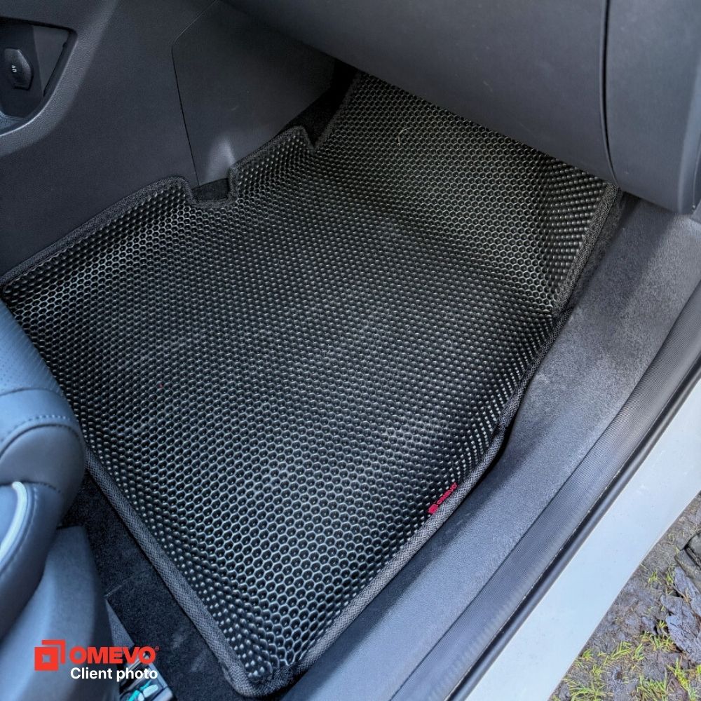 OMEVO EVA Mats® sú vyrobené z ľahkej, vodovzdornej peny E-V-A. Neabsorbujú vlhkosť, sú bez zápachu a ľahko sa čistia. OMEVO EVA Mats® kombinujú to najlepšie z gumových a velurových rohoží, pričom vynechávajú ich typické nevýhody. Sú vodoodolné, estetické, bez zápachu a vyrábajú sa presne podľa modelu auta, čo zabezpečuje pohodlie a čistotu každý deň.