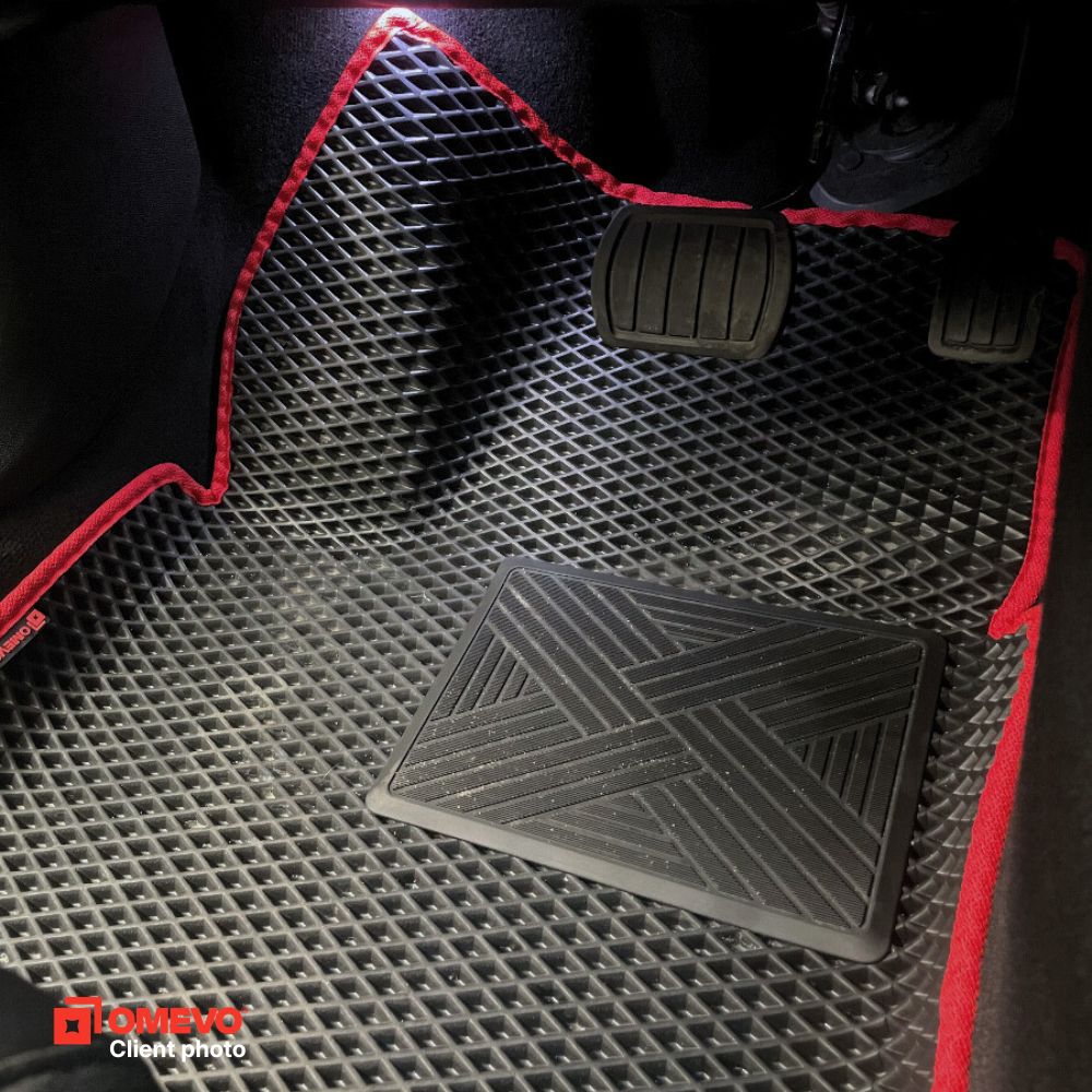 OMEVO EVA Mats® sú vyrobené z ľahkej, vodovzdornej peny E-V-A. Neabsorbujú vlhkosť, sú bez zápachu a ľahko sa čistia. OMEVO EVA Mats® kombinujú to najlepšie z gumových a velurových rohoží, pričom vynechávajú ich typické nevýhody. Sú vodoodolné, estetické, bez zápachu a vyrábajú sa presne podľa modelu auta, čo zabezpečuje pohodlie a čistotu každý deň.