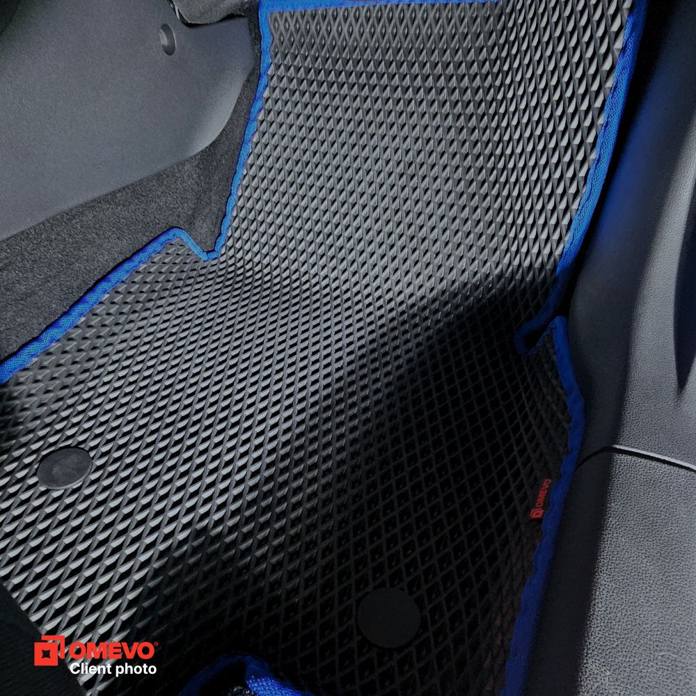 OMEVO EVA Mats® sú vyrobené z ľahkej, vodovzdornej peny E-V-A. Neabsorbujú vlhkosť, sú bez zápachu a ľahko sa čistia. OMEVO EVA Mats® kombinujú to najlepšie z gumových a velurových rohoží, pričom vynechávajú ich typické nevýhody. Sú vodoodolné, estetické, bez zápachu a vyrábajú sa presne podľa modelu auta, čo zabezpečuje pohodlie a čistotu každý deň.