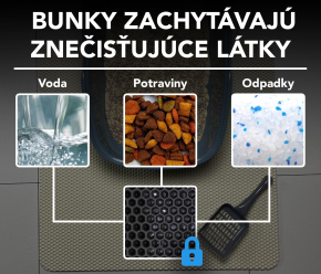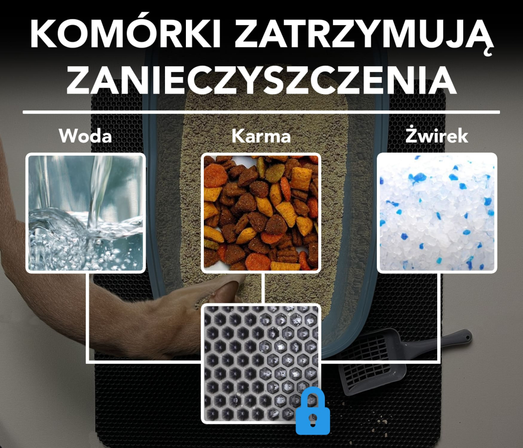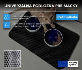 Univerzálna podložka EVA Home pre domácich miláčikov je novým krokom v udržiavaní poriadku vo vašej domácnosti. Použitie nového technologického materiálu zvyšuje komfort používania a zaručuje odolnosť voči poškodeniu pri zachovaní estetického vzhľadu. Voštinová štruktúra zadržiava vodu, krmivo a podstielku. Vďaka tomu sa ľahšie udržiava v čistote a zabraňuje ich roznášaniu po celej podlahe.
